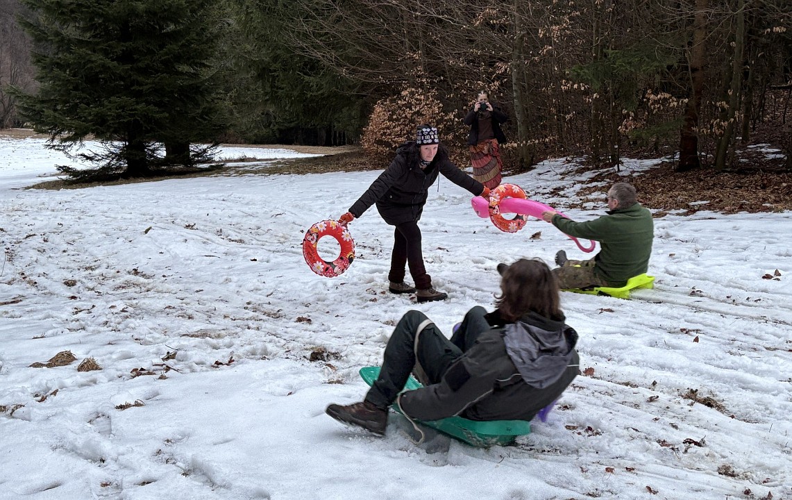 Rozhraním pracovného týždňa a víkendu kráčam po snehových poliach na lúčnatom hrebienku kdesi vo Vrchoch. Do vychodeného chodníka otlačím svoje stopy hneď vedľa pomenších medvedích. Je február bláznivej zimy a vôbec sa nedivím, že sa tu už (alebo ešte?) nespí.