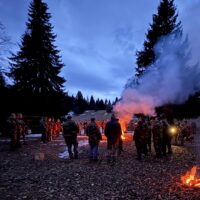 Ďalej už ide všetko podľa dávnych zvykov. Bárny nachystá suché predpoklady a pred zaplnenou vlajkoslávou do brezovej kôry vykreše iskry na čistý oheň. Pochodne, štyri strany, plamene, vlajka, tanec a smiech, občerstvenie od domácich aj príchodzích, väčšie než malé množstvo piesní, a napokon nás trochu vyskúša počasie, sneh, dážď a k ránu aj víchrica. Všetko je ako má byť, Segedín bol, je a bude a to je fajn. Ďakujeme, že to stále ťaháte. Ostáva len nájsť odpoveď na jedinú otázku: s chlebom alebo knedľou?