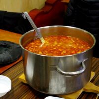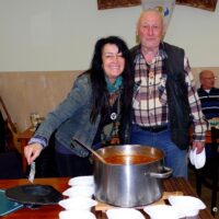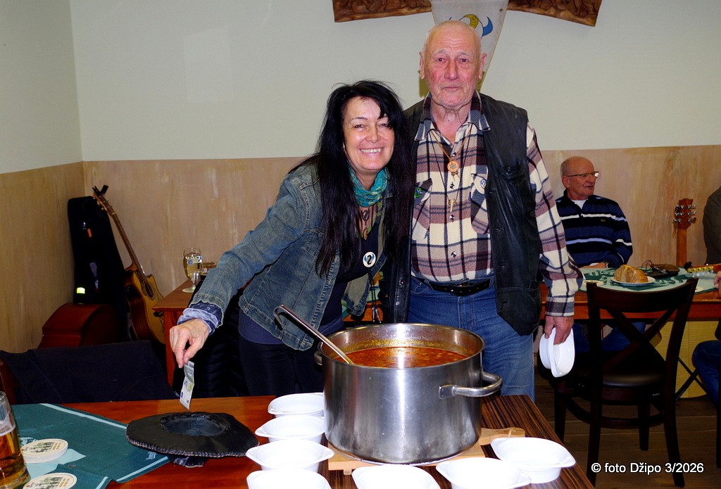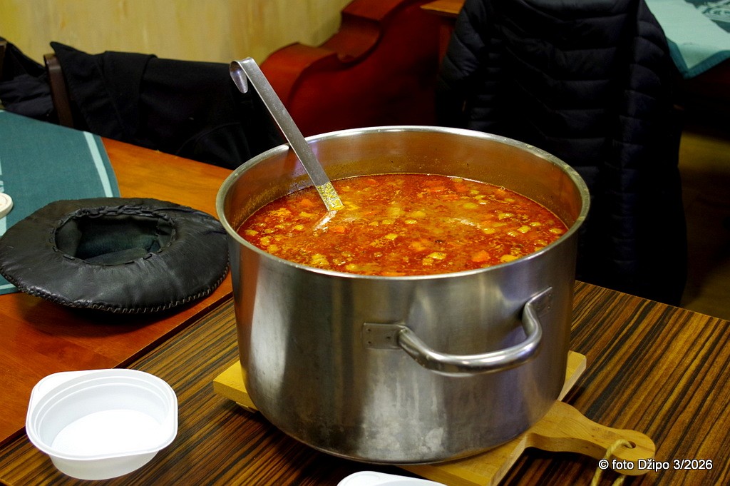 Pekné a najmä chutné prekvapenie pre nás pripravil Kaktus z Tatran lodenice. Uvaril a dopravil veľký hrniec jeho špeciality. Tou je sírovcový guláš. Domáci na Slamke mu vyšli v ústrety a pripravili stôl na servírovanie. Guláš bol vynikajúci a pochutili sme si aj na chlebíkoch s nátierkou, čo je tradičnou pozornosťou šéfa Slamky Roba.