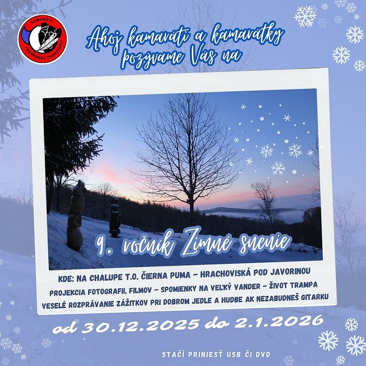 Záujemcovia o prezentáciu svojich fotografii nech kontaktujú Bubu 0908 266652, nakoľko kapacite chalupy je obmedzená.
