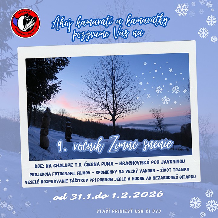 Záujemcovia o prezentáciu svojich fotografii nech kontaktujú Bubu 0908 266652, nakoľko kapacite chalupy je obmedzená.