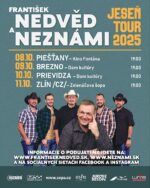 František NEDVĚD ml. po úspešných spoločných koncertoch so slovenskou skupinou NEZNÁMI na Slovensku a v Čechách vyrážajú na svoje prvé koncertné turné. František NEDVĚD, prvorodený syn legendárneho českého speváka a skladateľa Františka NEDVĚDA staršieho, pokračuje v rodinnej tradícii s nezameniteľným hlasom a autentickým hudobným prejavom. Spoločne so slovenskou kapelou NEZNÁMI, ktorá patrí medzi najvýraznejšie formácie country hudby u nás, ponúknu divákom jedinečné koncerty plné známych hitov aj autorských skladieb. Na koncertoch zaznejú dnes už legendárne NEDVĚDOVKY ako Frenky Dlouhán, RŮže z papíru, Stánky, Valčíček, Souhvězdí jisker, Igelit,Kohout, Skládanka nestarnúce piesne Kočovní herci, Řemeslo, Rejdivá, Devatenáct, Jsi mým osudem, Jsem jenom chlap, Opušténej lokál, Klídek, publikum sa môže…