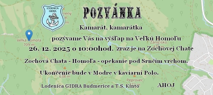 26. 12. pozývajú na Štefánsky výšľap na Veľkú homolu (Malé Karpaty) z Lodenice Gidra a T.S. Kinto